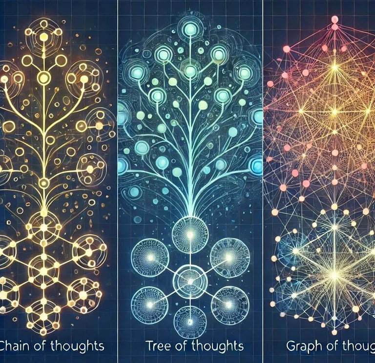 This article explains the Chain of Thoughts (CoT), Tree of Thoughts (ToT) and Graph of Thoughts (GoT) techniques in prompt engineering